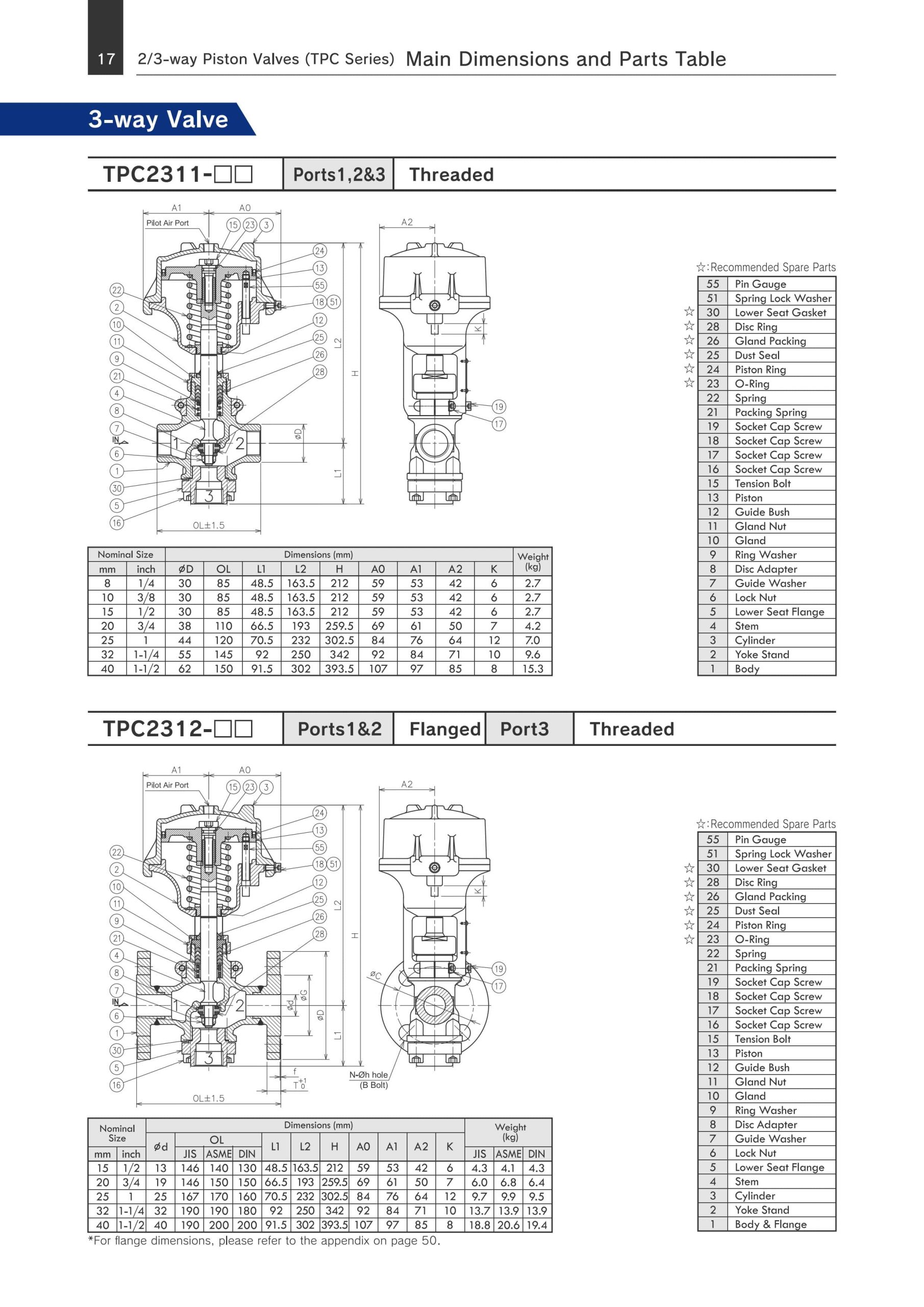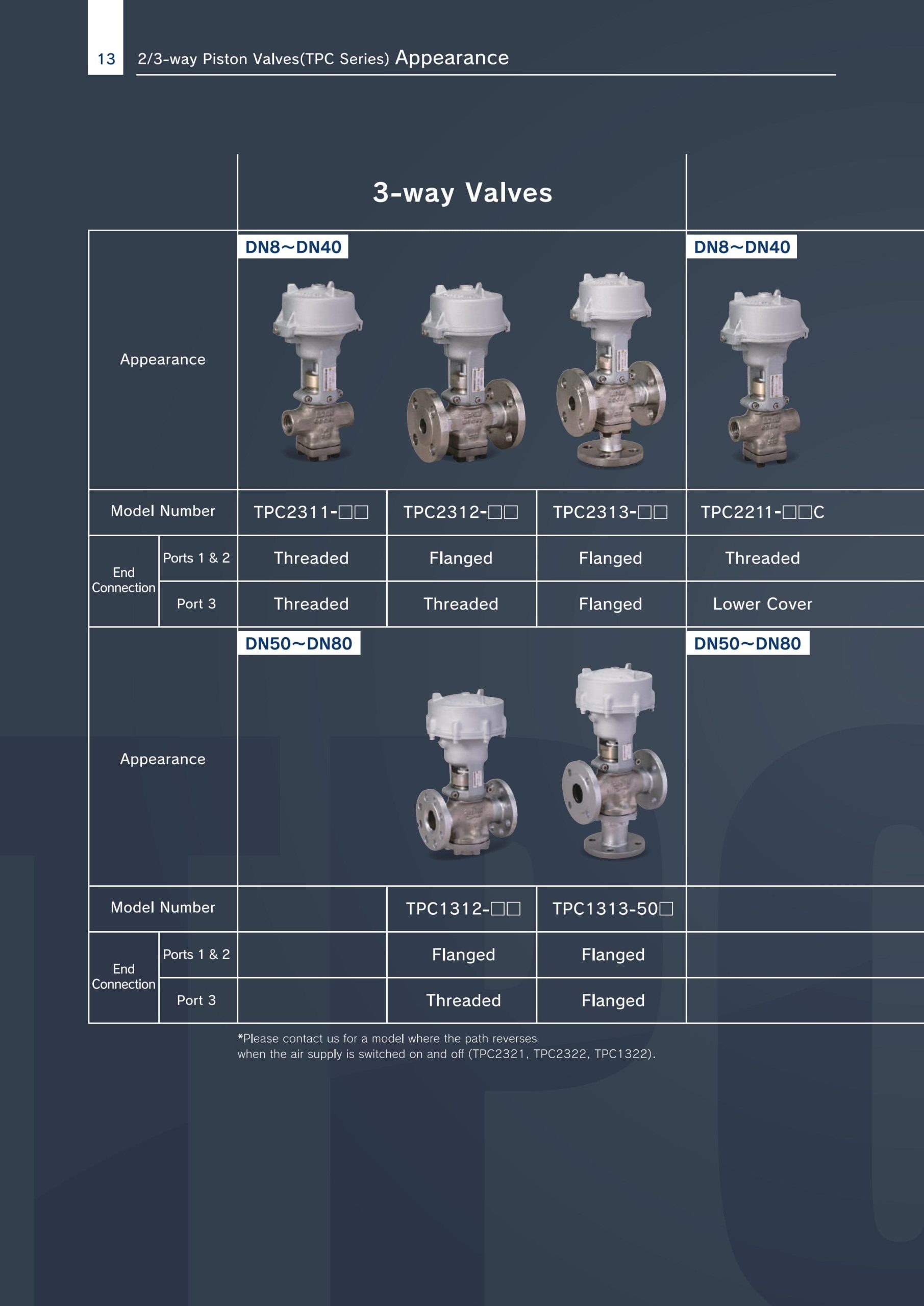 | TPC2311-□□ | 2-way (NO/NC) | Threaded (ren) | Threaded | Dòng van 2 cửa, loại nhỏ gọn, dùng cho hệ thống hơi hoặc khí. |